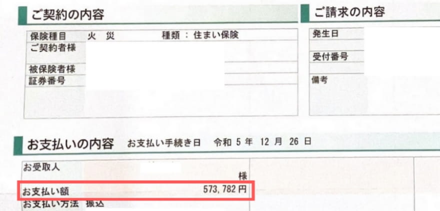 (※)火災保険の給付金の有無や額は最終的には保険会社が決めるため必ずしも保険がおりるとは限りません。 -