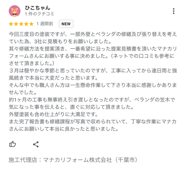 地域密着の自社施工にこだわる業者だけなので、工事後も安心 です。