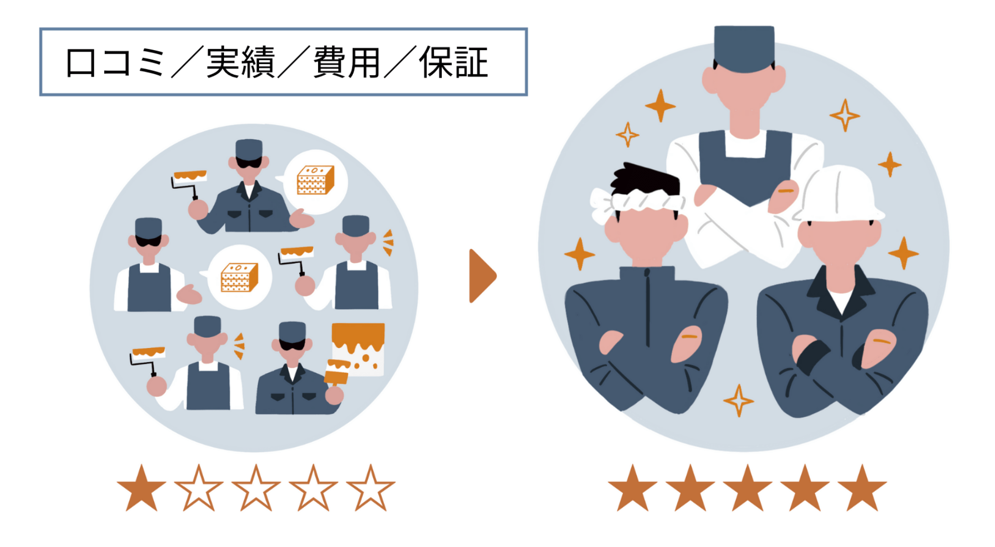 大手検索サイトなどの口コミを細かく分析して、地域一番の業者しか紹介しません。