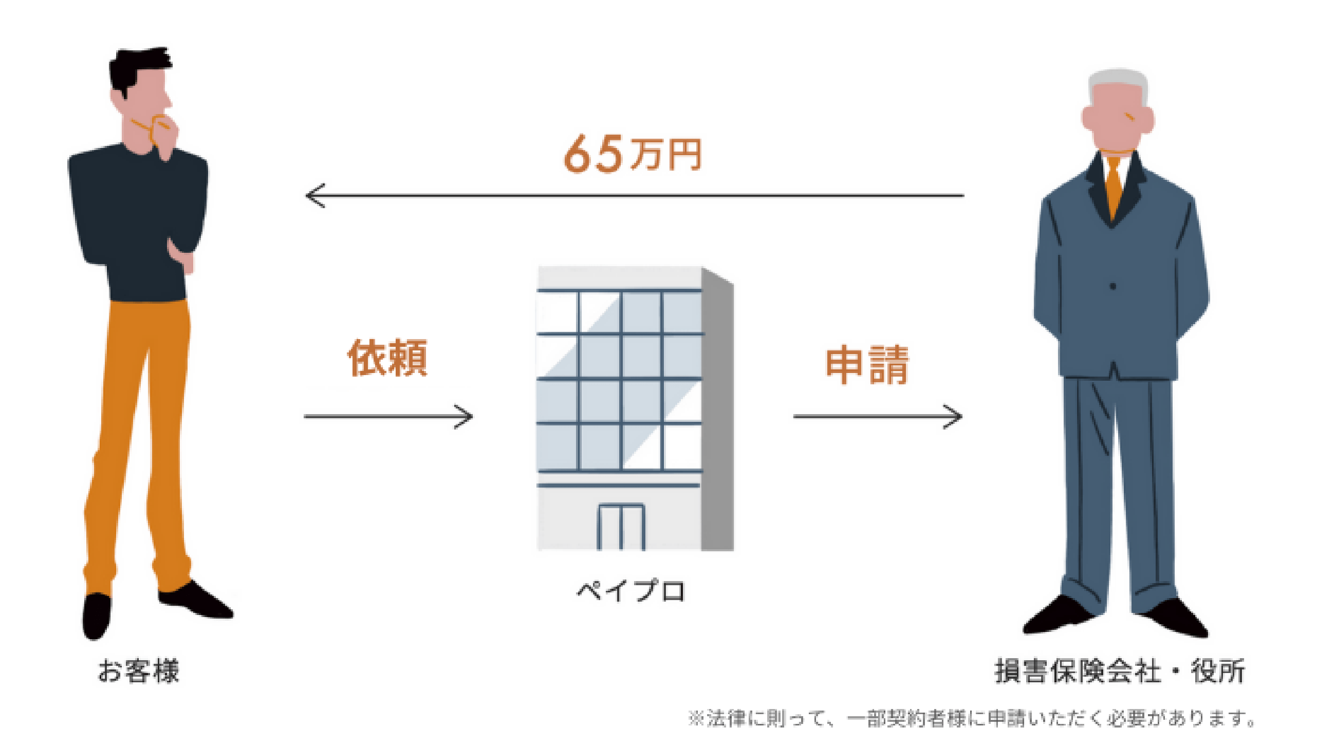 「ペイプロ」では無料で助成金や補助金の申請代行を行い、火災保険の申請も認定までサポートします。そのため工事費用が安くなります。